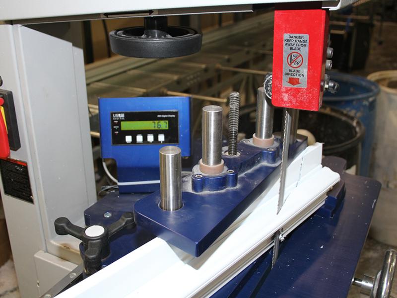 La scie développée par PVC Architectural peut couper des angles au-delà de 70 degrés. Il nous est donc maintenant possible de vous offrir des fenêtres avec des triangles à angles plus prononcés.